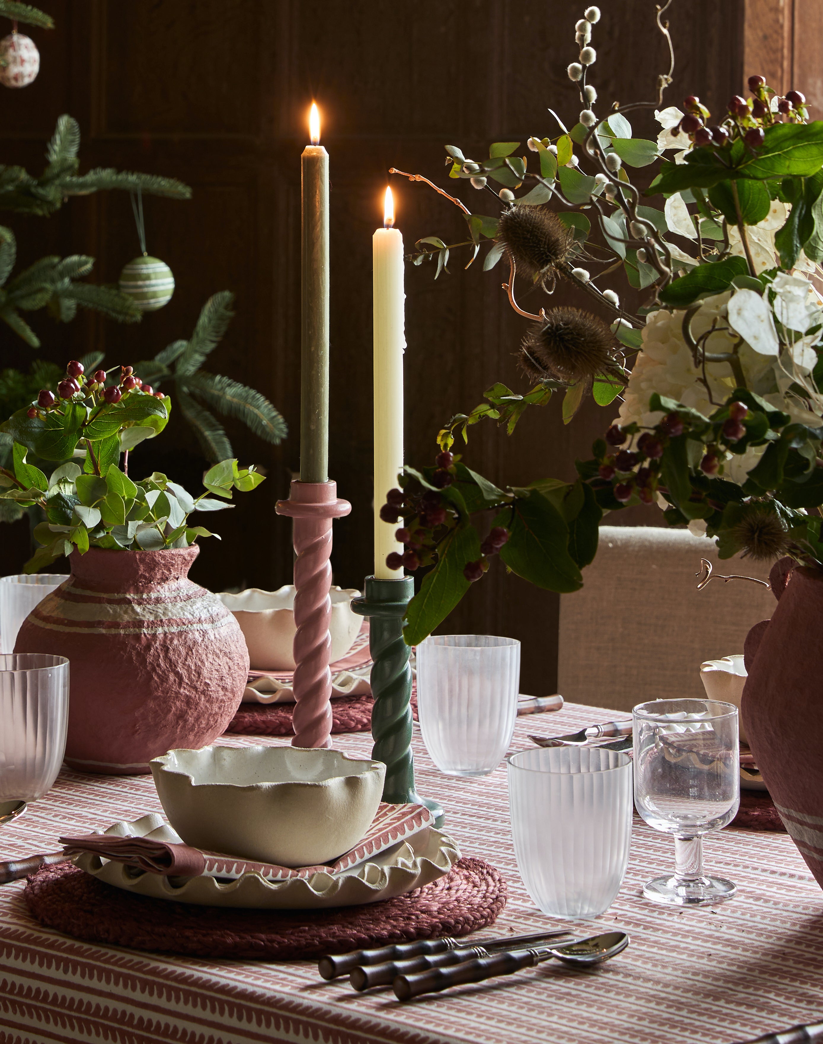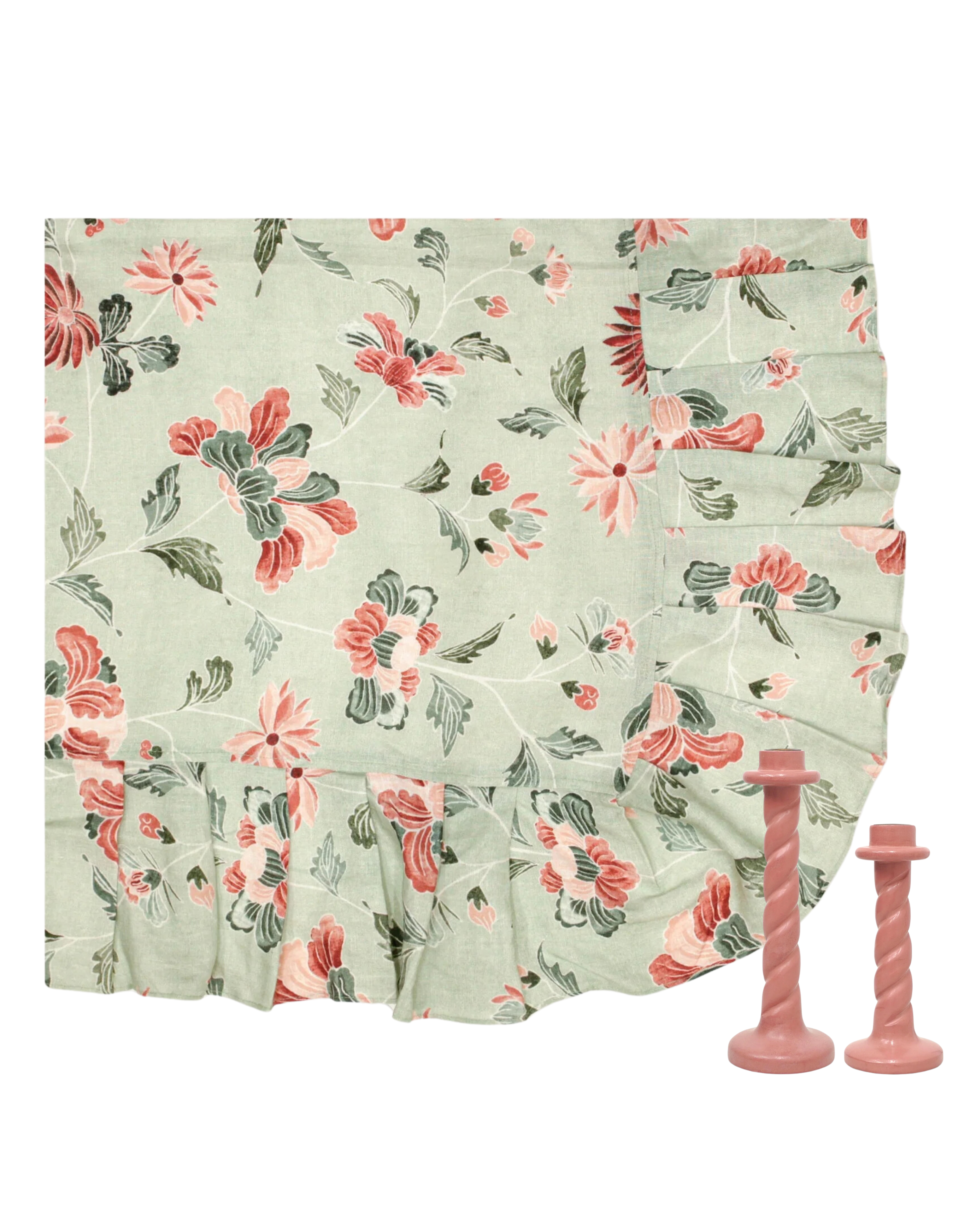 What better way to top your tablescape than with a scattering of candlesticks? This works especially well for an evening meal - lit candles will add drama and warmth to your atmosphere, which is welcome even in summer! Our Twisted Wooden Candlesticks are hand carved and have recently been added to our Summer Sale with 20% off. Our light pink option is the perfect colour to style with this tablecloth, but you could add in both greens too.