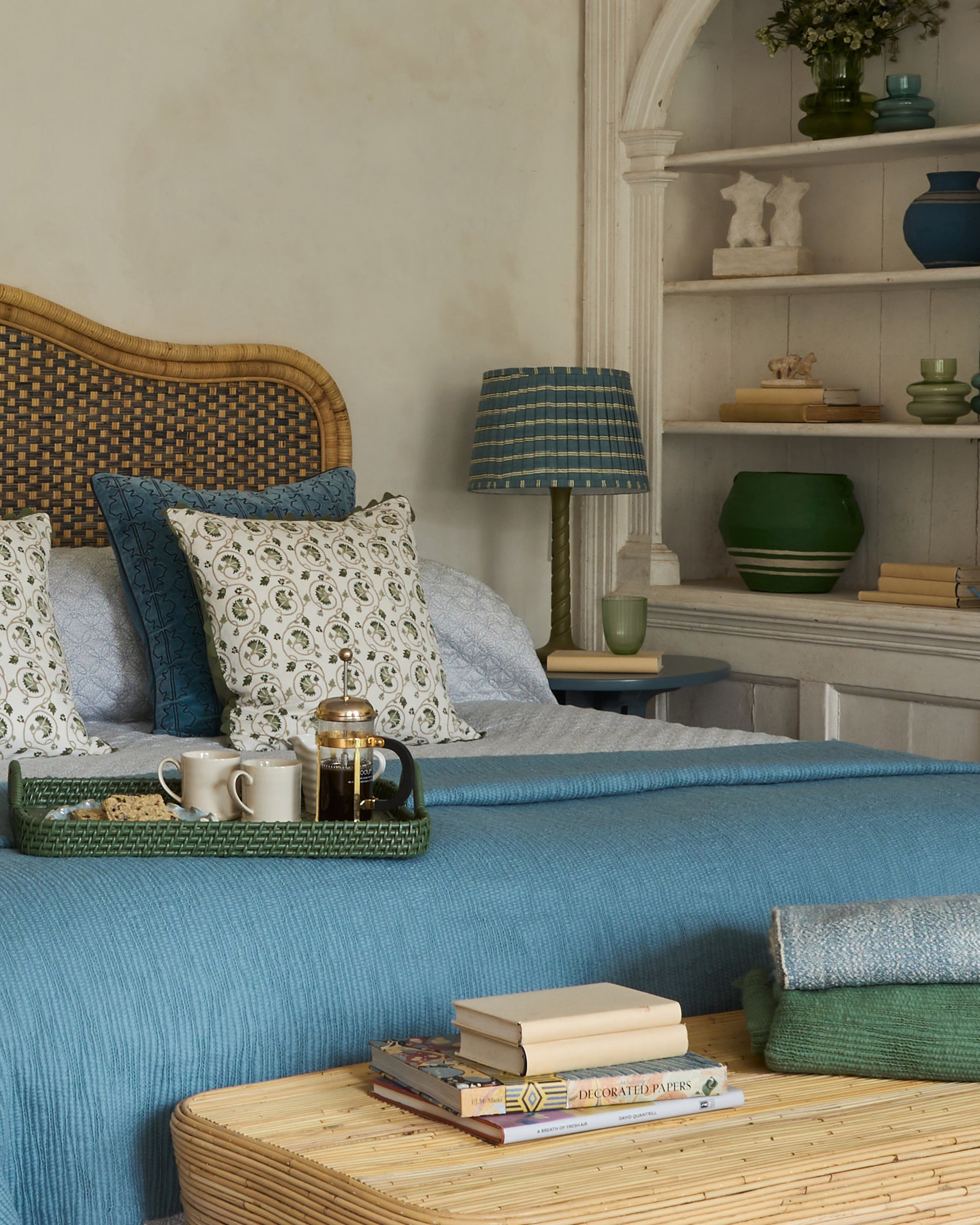 Elevate any bedroom with our Pink Rattan Headboards, these are handcrafted in Indonesia with exquisite attention to detail. Our headboards are available in three sizes - Single, King and Super King. Each piece features a checked woven finish and a soft scallop shape, creating a sleek backdrop that complements any decor style, whether you prefer a pared back, or more eclectic look. These headboards look great when styled with layers of soft furnishings and fresh white bedding, such as our Cotton Crochet Bedspread or for a little more colour, our Quilted Squares Bedspreads.