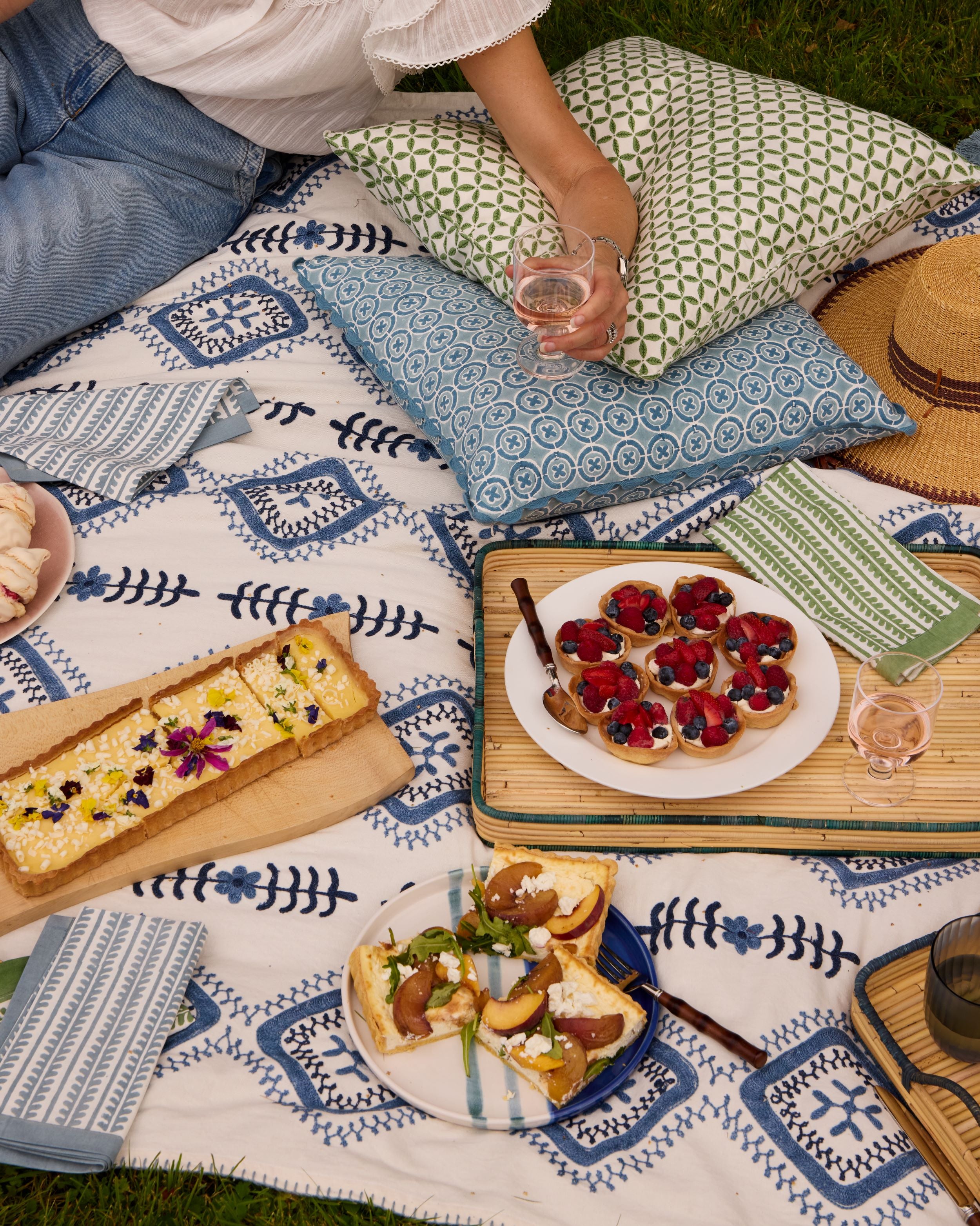 Add a touch of handcrafted charm with our Mariana Block Print Cushion, featuring a delicate trailing leaf design inspired by Birdie’s travels in Cuba. Hand block printed on a soft cotton-linen blend, the subtle green and blue tones gently sway across an off-white base, and are finished with smart contrast piping for a refined touch. Available in two soft colourways, try pairing with the Teja Scalloped Block Printed Cushion or Remolino Embroidered Velvet Cushion for a considered, textured look.