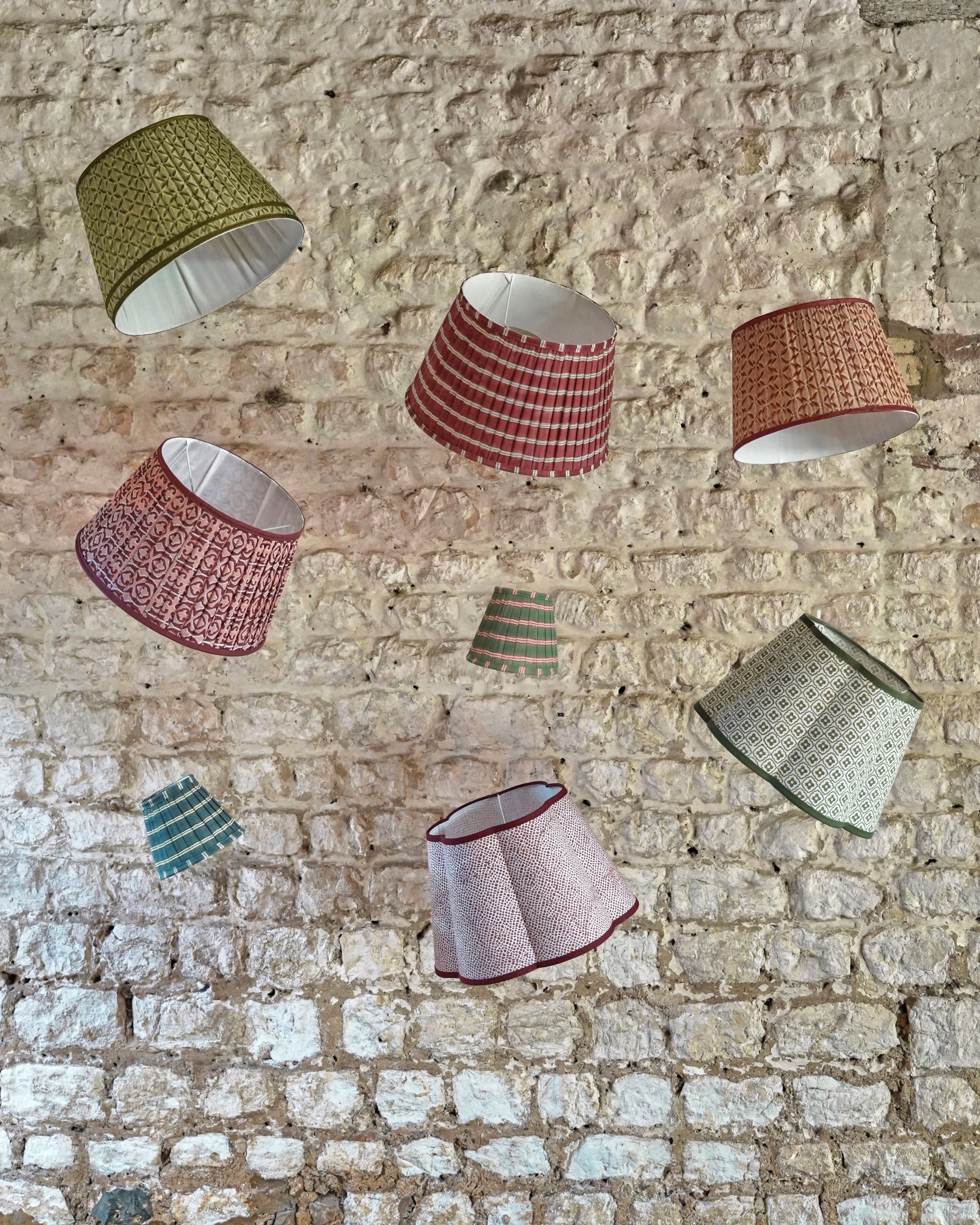 So much of the charm of English country houses is in the way that their interiors evolve over time. Less chuck out the chintz, more make do and mend. Schemes are less rigid and often subtly adapted as items wear out, replacing a moth-eaten rug or a too-saggy armchair with new or antique pieces that bring a fresh energy and more layers to the space. A simple way to do this in your apartment is to mismatch your lampshades. The design cautious might stick to one colour but chose a mix of patterns, like our Scalloped Finestra Lampshade combined with our Trellis Pleated Silk Single Band Lampshade and a Seema Raffia Pendant Candle Lampshade. For the more adventurous, try pairing our fun Edo Stripe Lampshade with a Santa Clara Pleated Block Shade and our Tedate Raffia Candle Shade.
