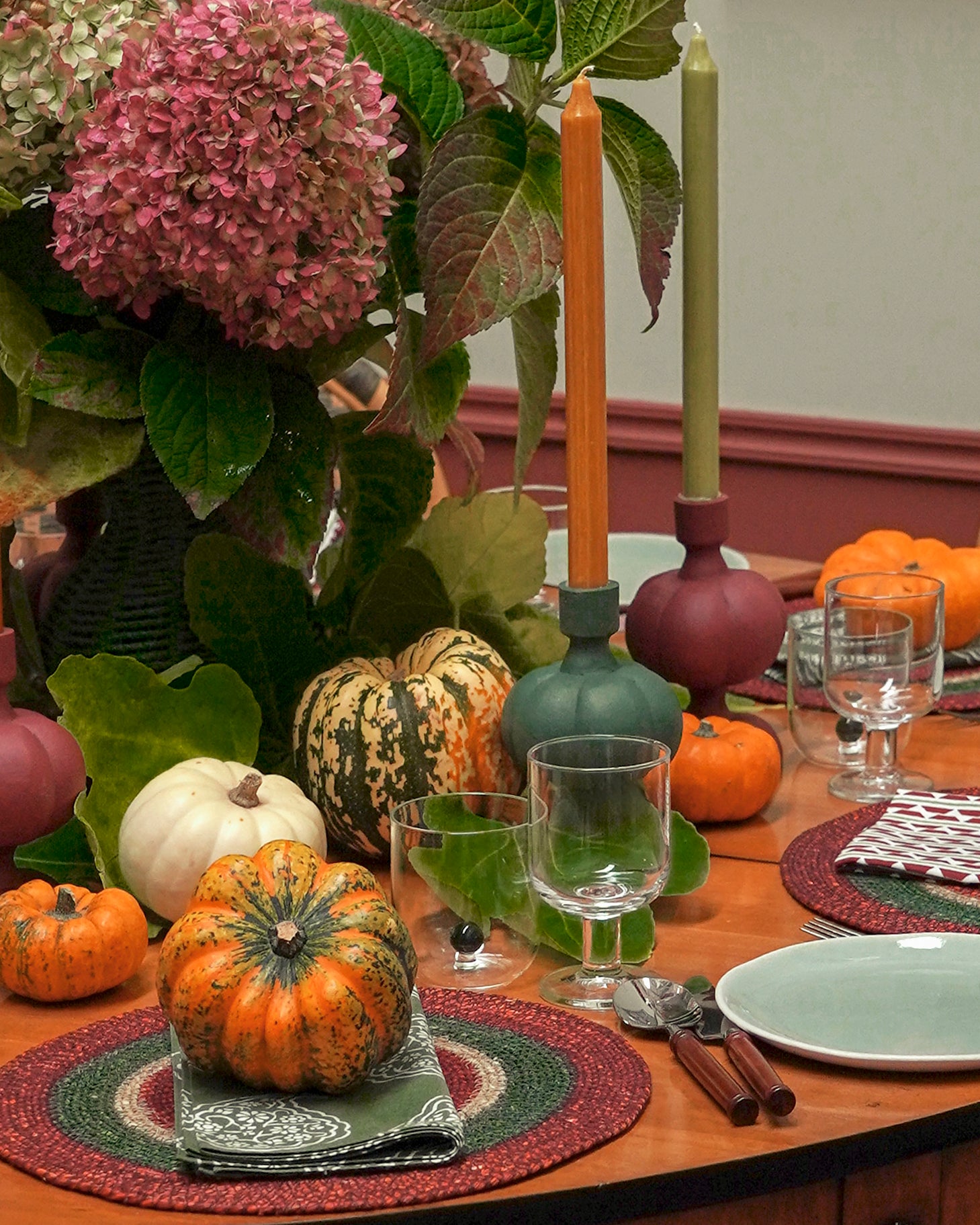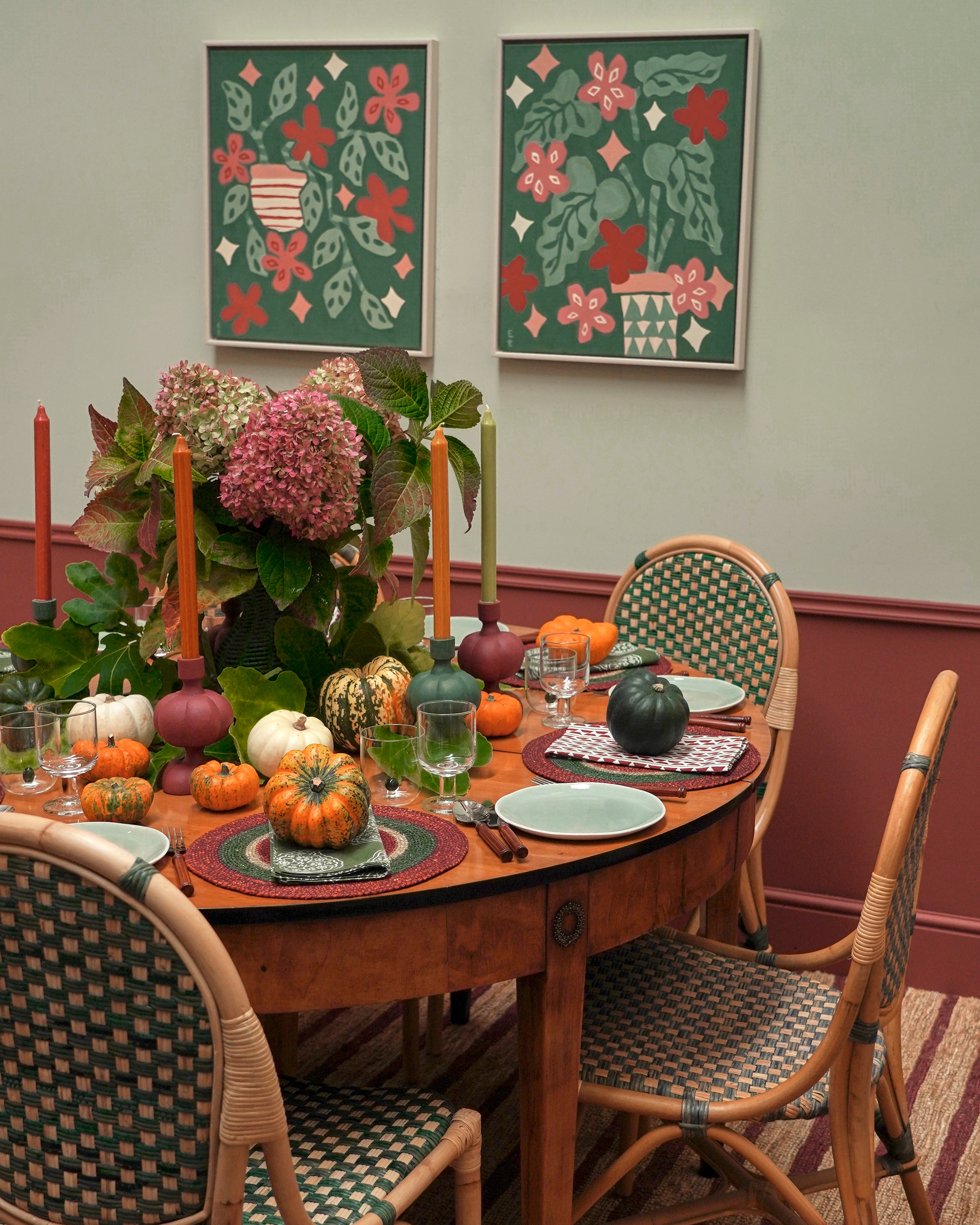 Why not decorate with real pumpkins and gourds? These sweet little chaps are just perfect for adding even more charm to your table!