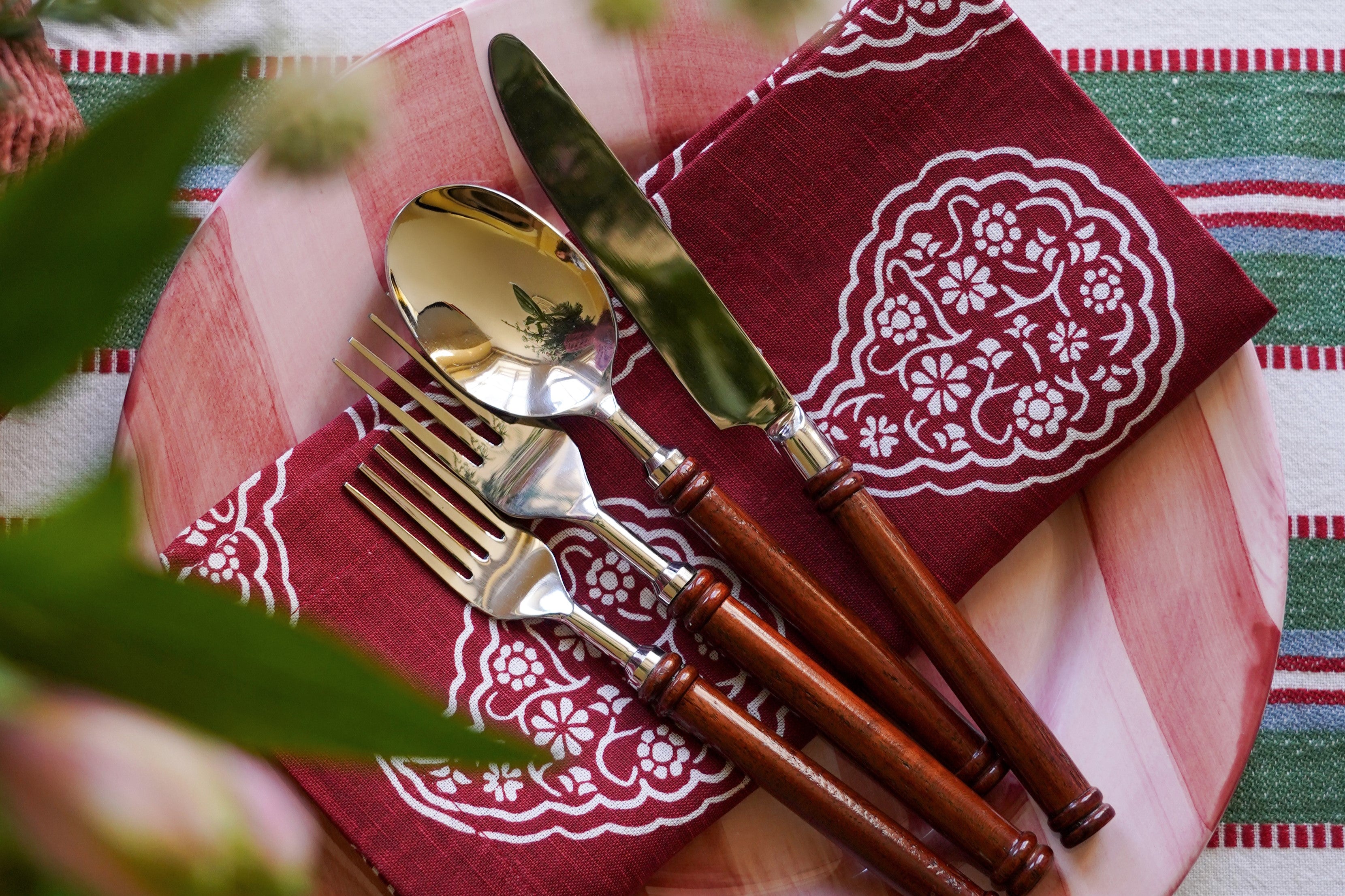 We work in partnership with artisans in India to create our exclusive table linens. They are a mix of block printed and digitally printed designs, all unique to Birdie Fortescue.